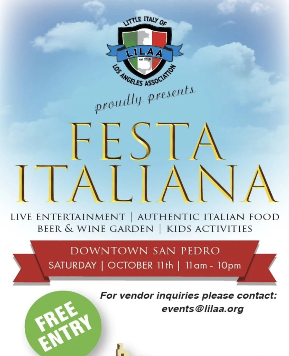 The Festa Italiana is a FREE, family-friendly event organized by the Little Italy of Los Angeles Association to showcase Italian food and culture. During the event, performers from Opera Italia will present a concert of arias and duets.