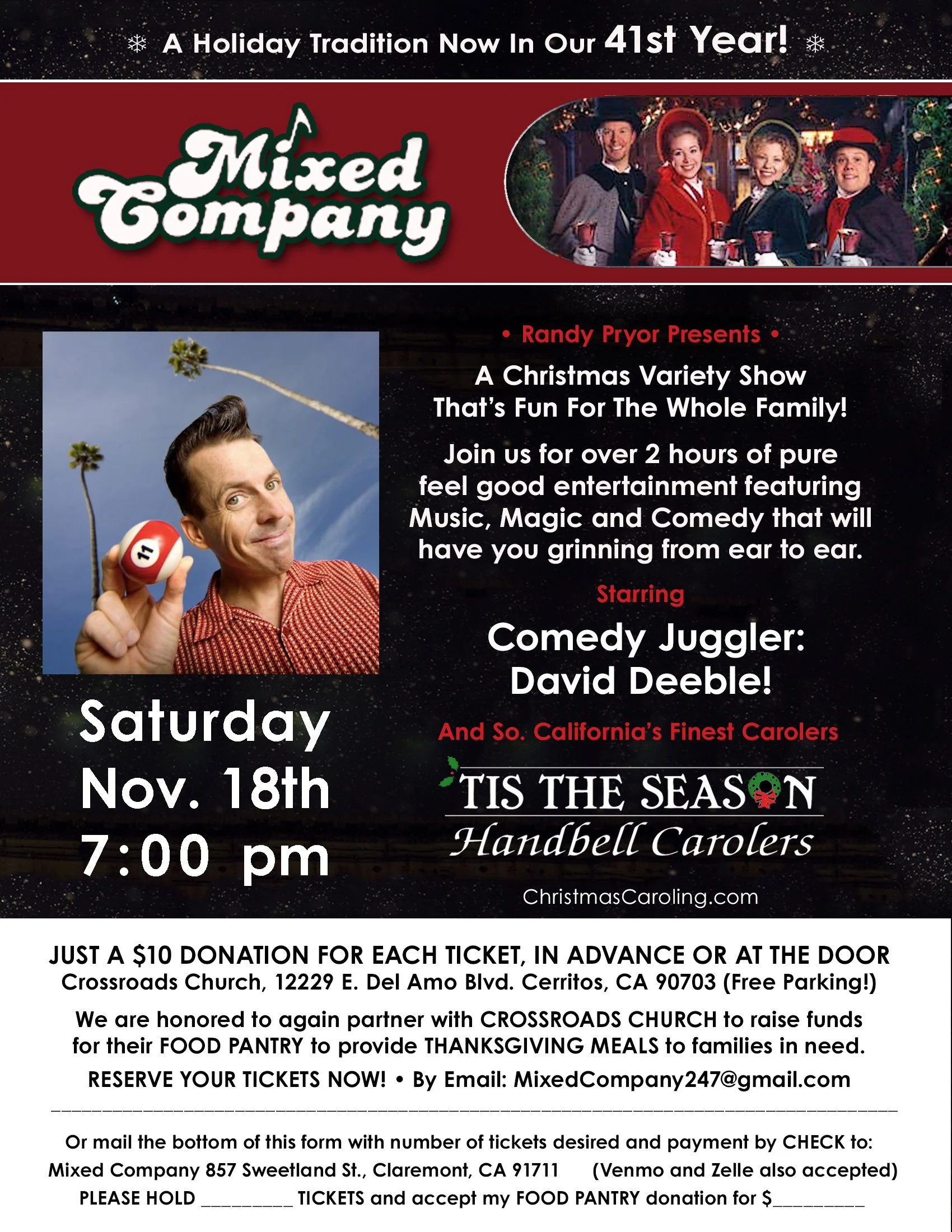 The Mixed Company presents their annual Christmas Variety Show featuring the ‘Tis the Season Handbell Carolers as well as special variety guests!
